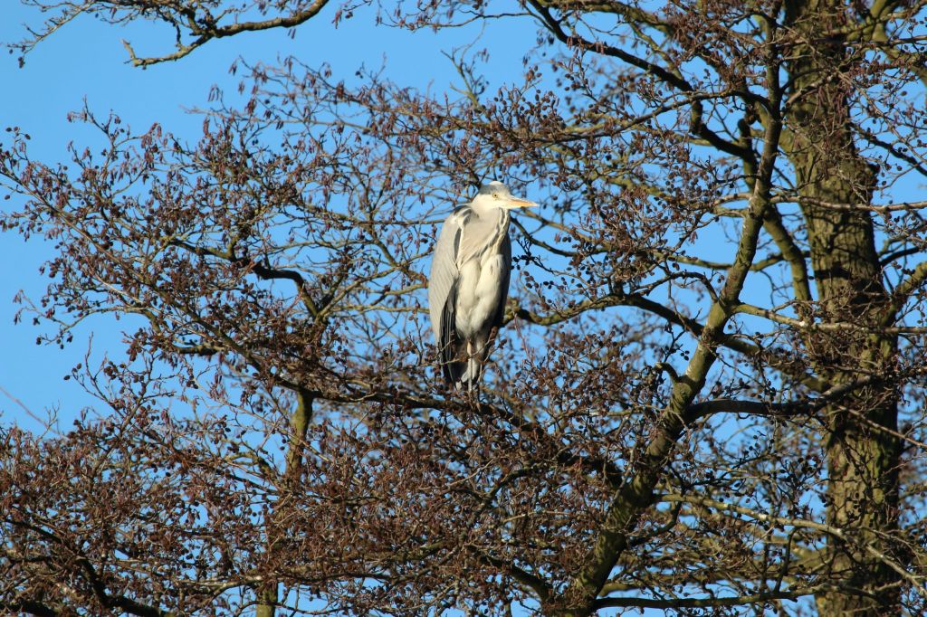 “A single Grey Heron, perched high in a tree, surveyed events below with magisterial disdain“